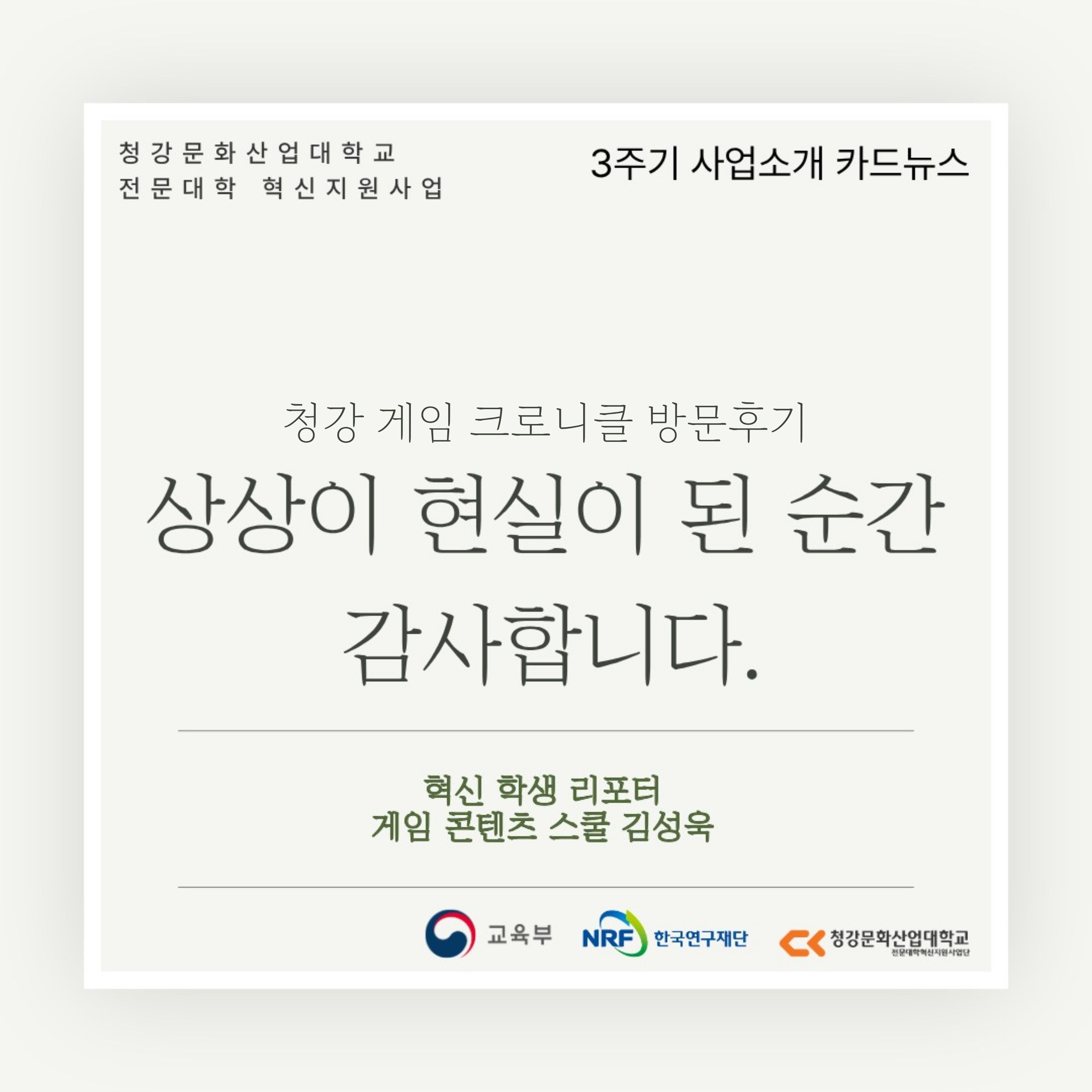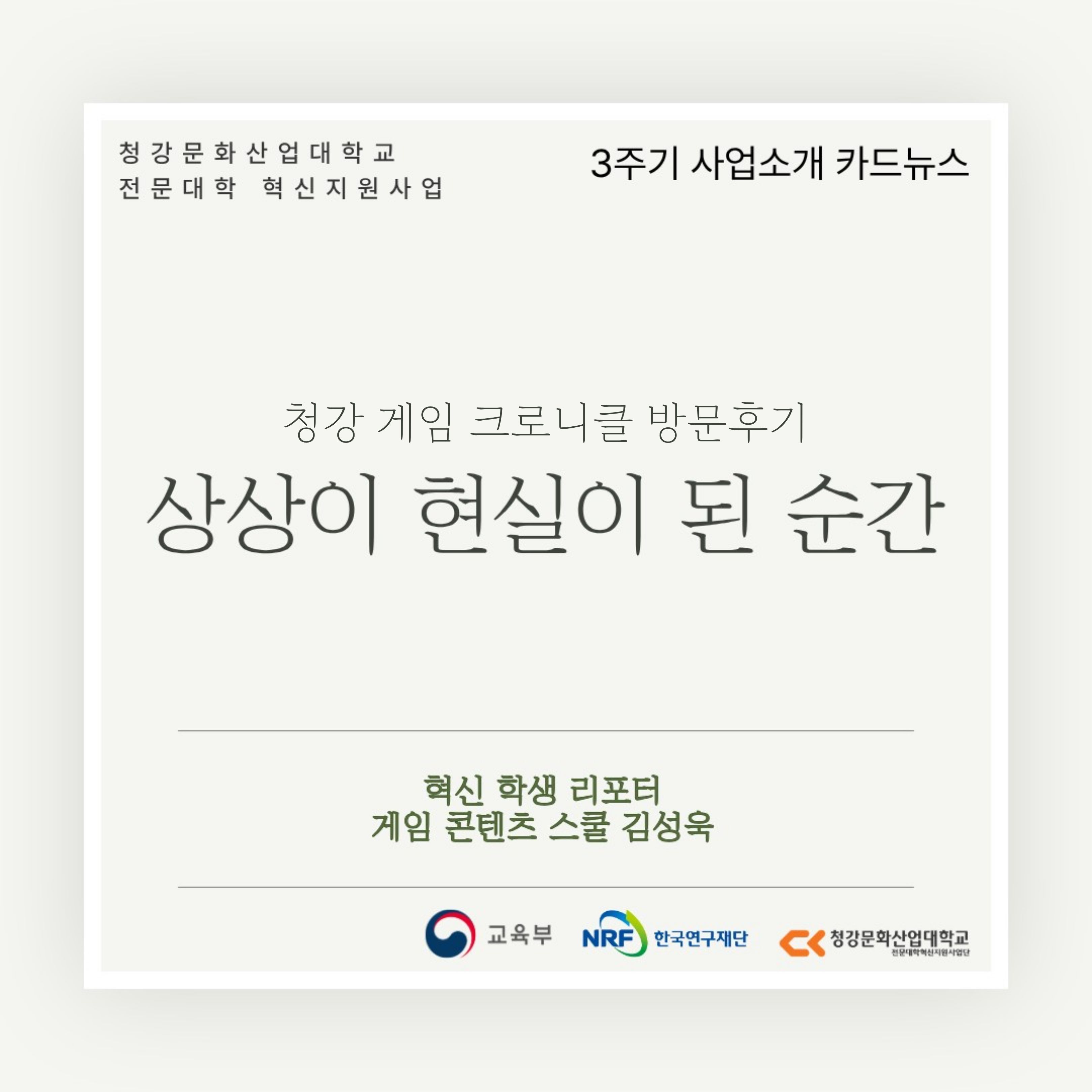 혁신학생리포터와 함께 보는 청강 이야기: 상상이 현실이 된 순간! 청강게임크로니클 방문자 후기