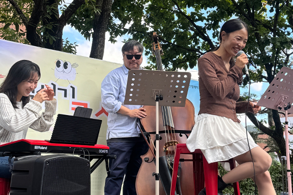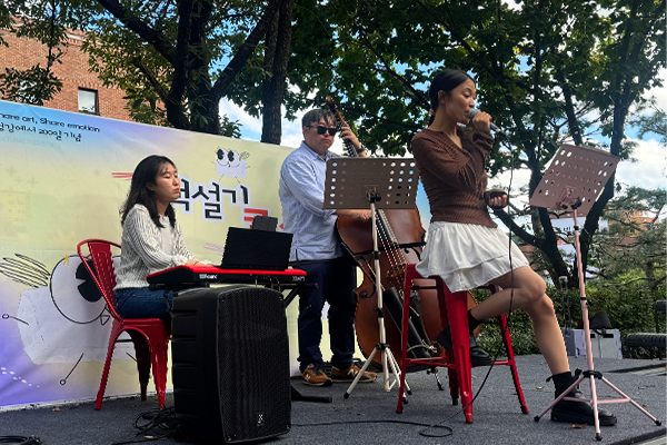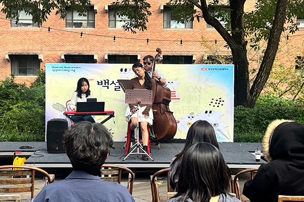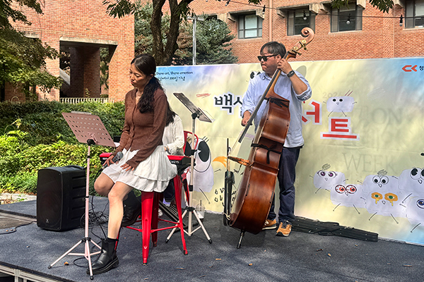The Baekseolgi Concert featured a guest jazz band performance, creating a warm and relaxing autumn atmosphere on campus. The deep tones of the contrabass and gentle rhythm of jazz brought a cozy lunchtime mood for everyone to enjoy.